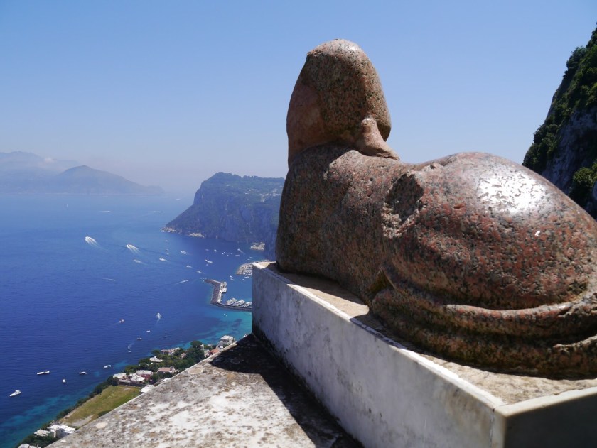 I couldn’t resist this opportunity so we took a chance, jumped on a bus and shot up the mountain to visit this amazing place. The bus ride to the peak of the island was lovely and the villa was not hard to find. We ambled through the house and gardens and I was able to touch the Sphynx that watches out through the mist over the entire island.