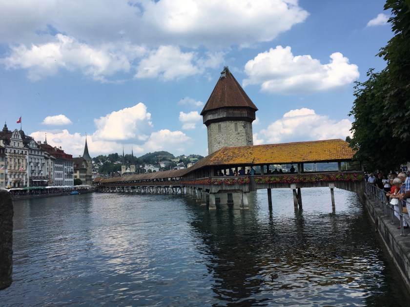 One more time across the Chapel Bridge. Off to Paris in the morning. Big day!