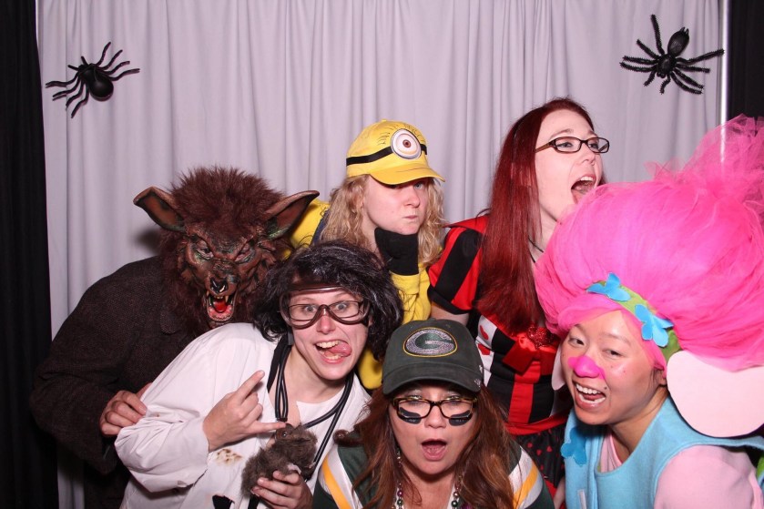 Yes, we will celebrate anything. But we do love Halloween. Who doesn’t? I love the enthusiasm when Phung rolls out a party idea. Everyone has a great idea to contribute. She even had a photo booth for this Halloween event. Our friend, Tom, brought a pink porta-potty. So thoughtful!