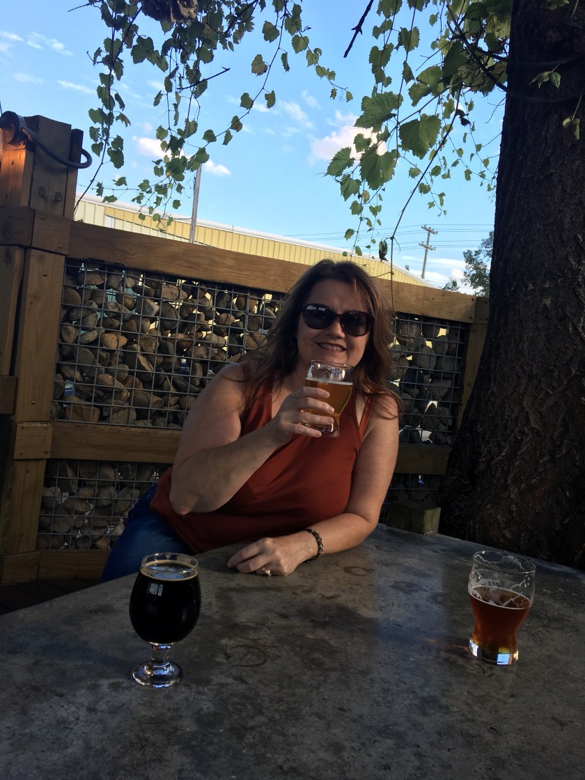 What’s fun to me about Microbreweries, is that they have an ever changing menu, There is always something new. I LOVE trying new things. The outdoor bar doesn’t have the full beer lineup, but if there is something you want then you just go grab it inside and bring it out with you. I wanted to try this limited release New Zebedee Supernaturale, when I went in to grab it I ended up coming out with Jam Session as well. Mark just shook his head. Lol, variety is the spice of life!