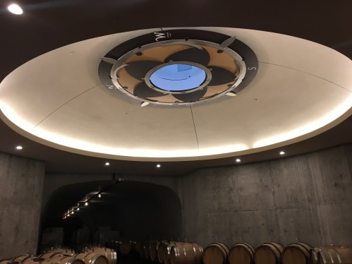 The halls of barrels stretched out like arms from a circular center area with a floor tile that looked as if it came straight off of a Treasure Map. One area was gated for storing their private wine collections.