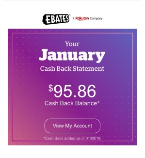 This was my January Ebates Statement. I earned $95.86 between 10/1/18 and 12/31/18.