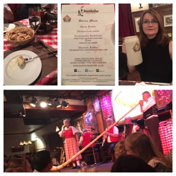 The Stadkeller not only had delicious food but very lively entertainment as well. After their show which had a Lawrence Welk style delivery, they started pulling people up for contests in yodeling, dancing and playing alpine horns.