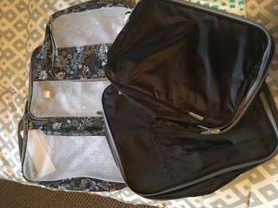 When I am getting ready to travel, the first step in Packing is picking out which suitcase(s) are appropriate for the trip. I have had a green jacquard set for nearly 20 years. I am in the market to replace this set since it is starting to show serious signs of wear and tare. The set has four pieces, both a 28″ and a 22″ rolling suitcase with pop up handles. It also came bundled with a very small shoulder bag that we don’t use much because it is just too small, and good sized weekender style bag that I mostly use for our toiletries and miscellaneous items. We also have 2 matching black Eddie Bauer carry-on sized rolling duffle bags and our our favorite gray Samsonite carry on bag we bought for our big trip last year.