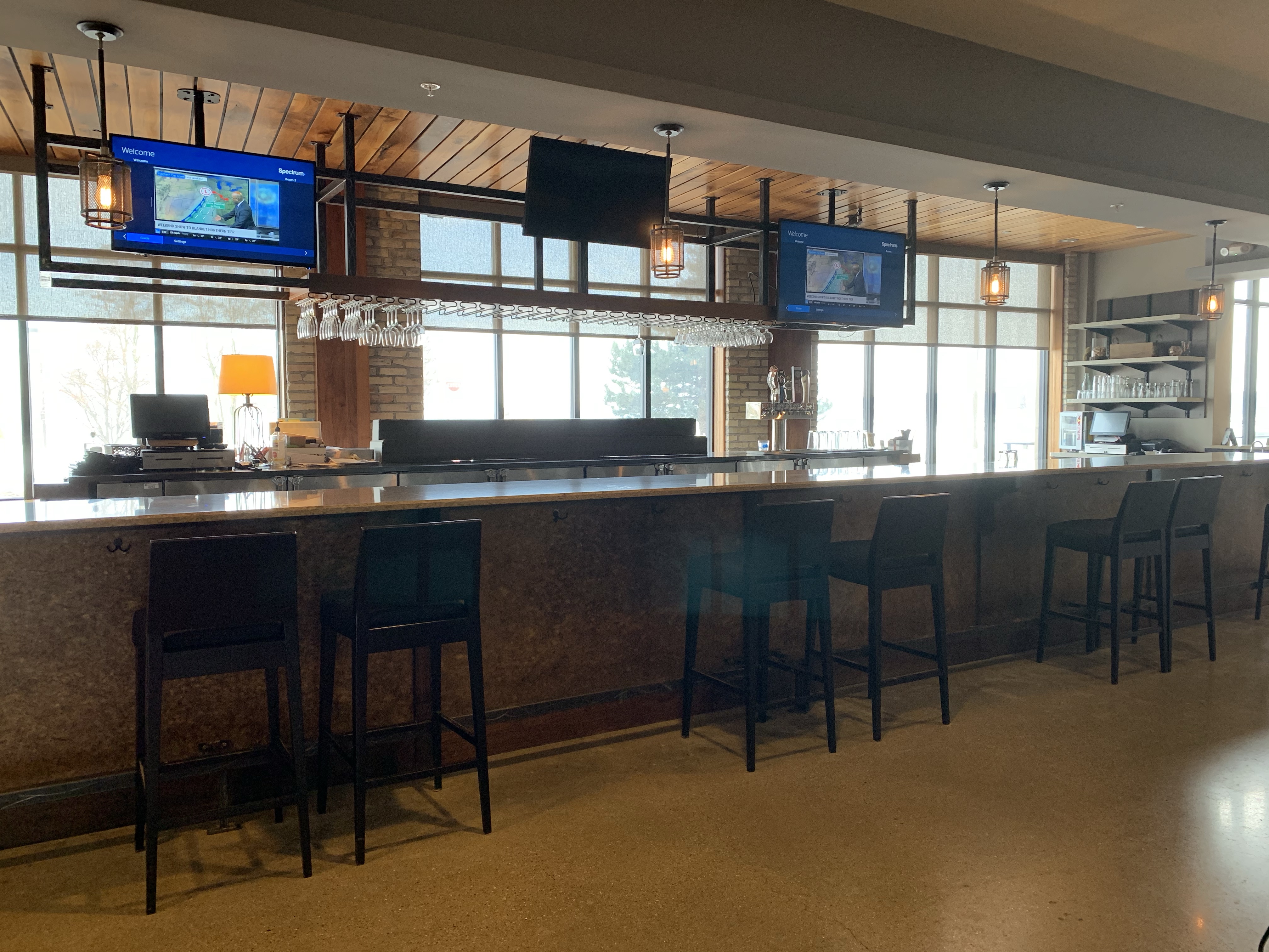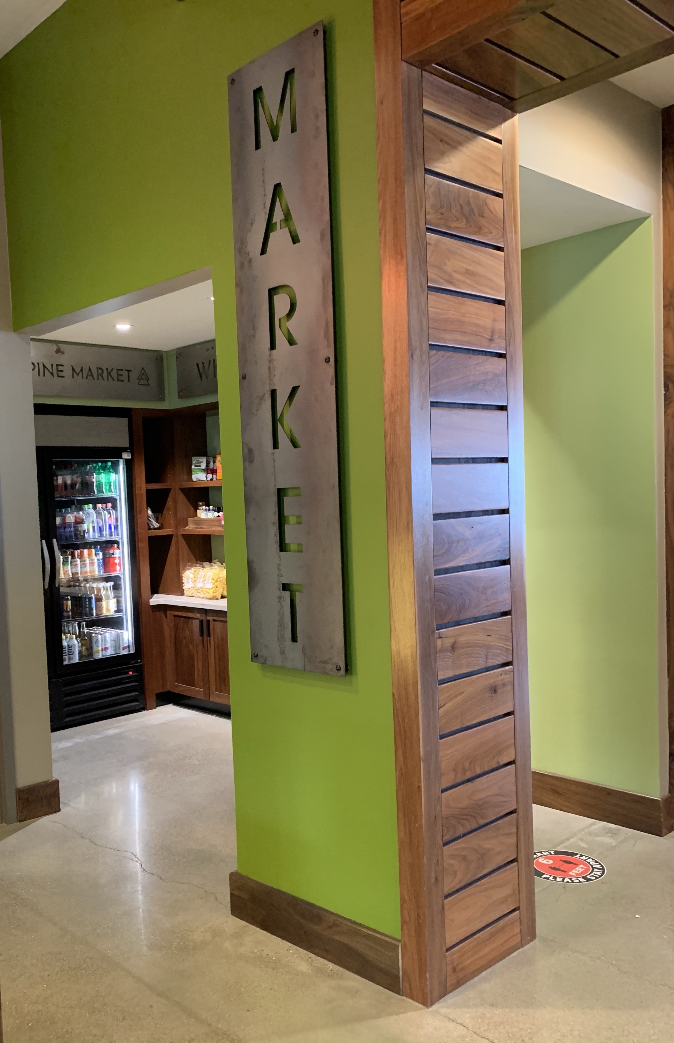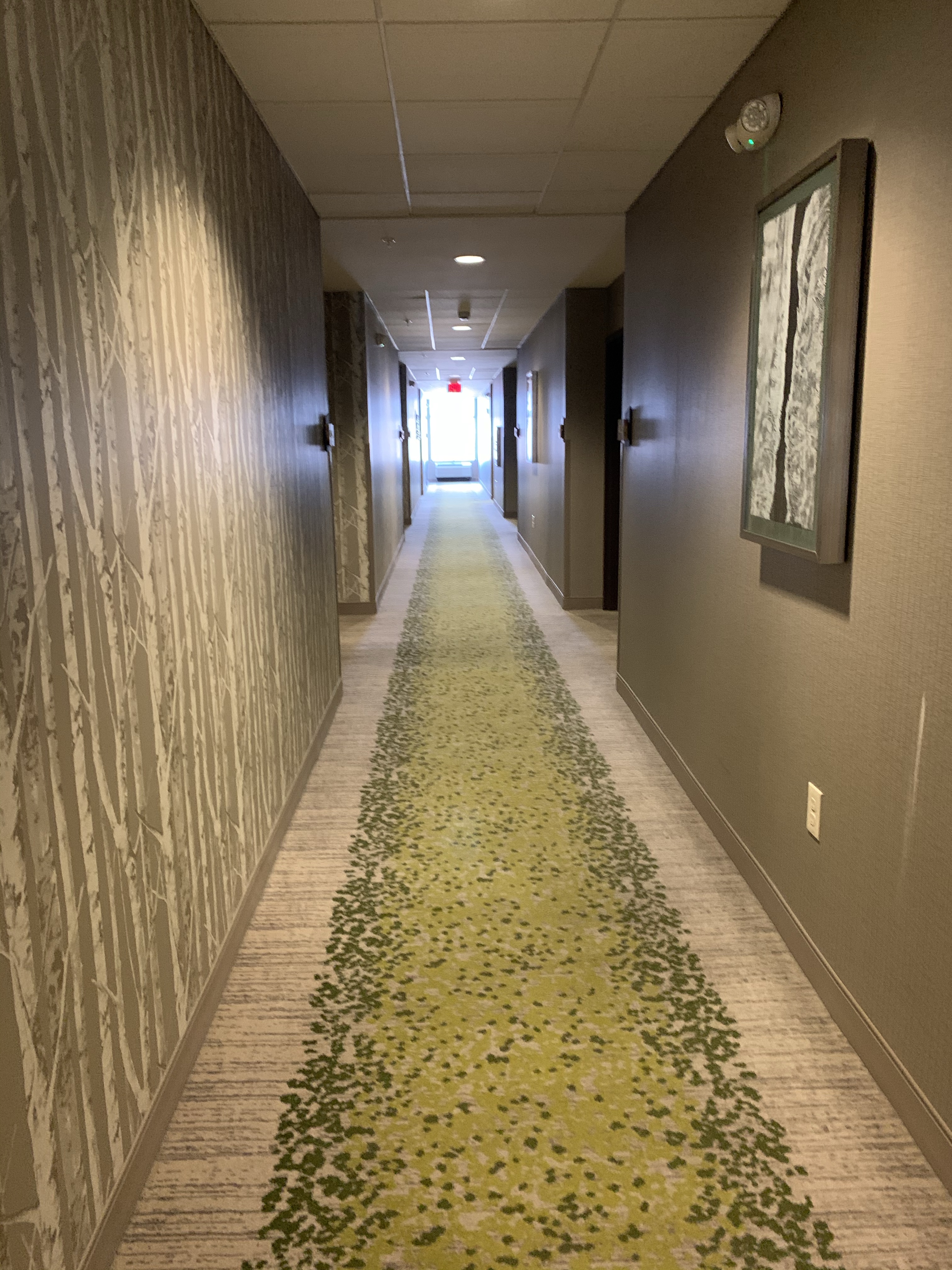 Although the decor at this hotel is pretty modern, it also reflects an Up North vibe with forest like wallpaper in the corridors and carpeting that resembles a canopy of tree tops. All of the signage throughout the hotel are wooden planks with a live edge to further express the woodsy motif.