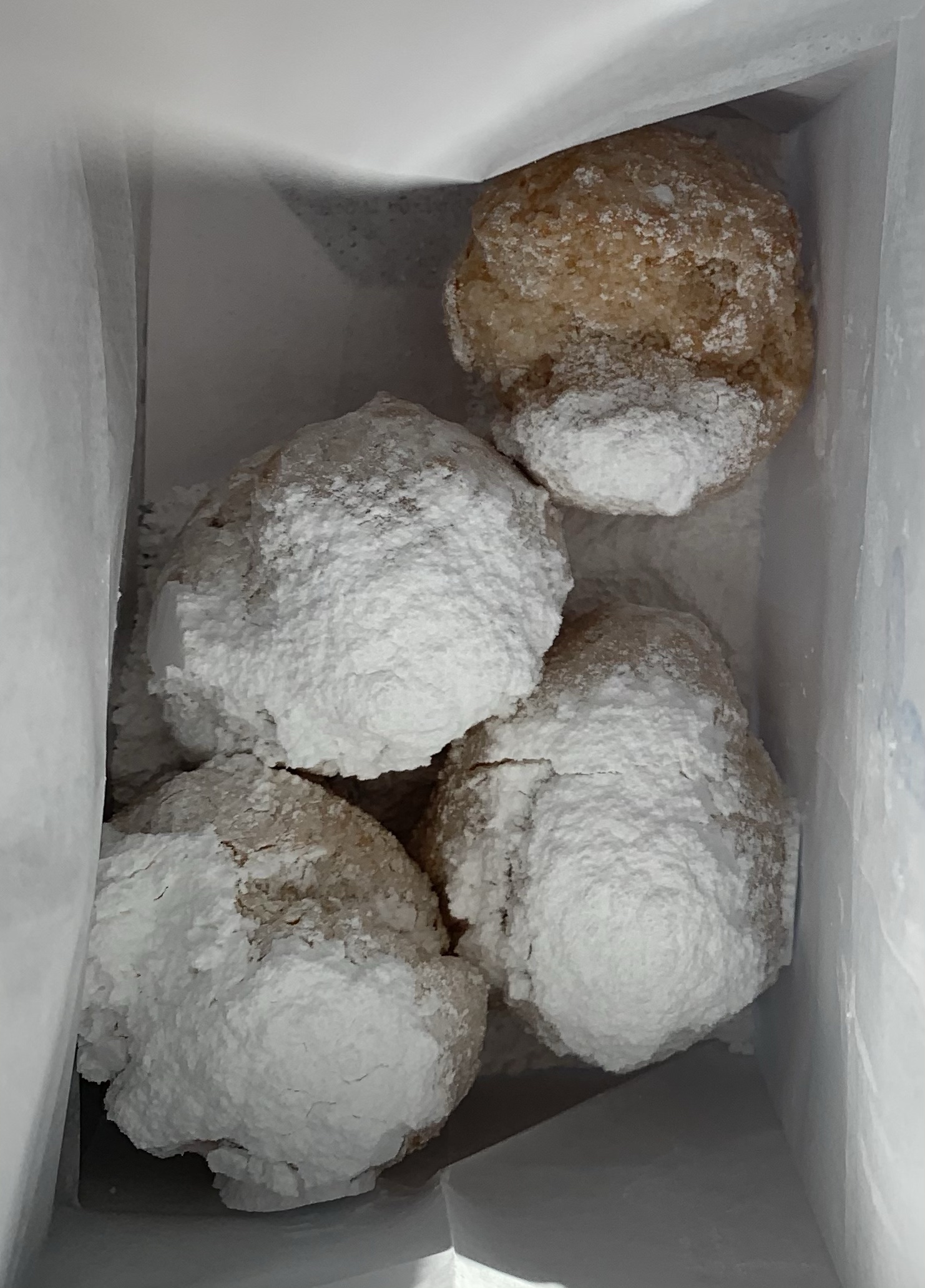 Their Brunch Menu is extensive. Mark ordered the Quiche Lorraine and some Beignets for dessert and I decided on the Crabe Benedict. We expected small portions, which is common at upscale restaurants. But that was not the case here at all. Mark’s slice of quiche was sizeable and it came with a large green salad on the side. One look at my plate and I knew I would never be able to finish it all. The Crabe Benedict consisted of an open faced English muffin topped with thick slabs of Canadian bacon, and poached eggs nestled in a choron sauce*, with a whole breaded and fried soft shell blue crab draped across the top. It was heavenly! We ended up taking the fresh made beignets to go because we were both stuffed, and they were still delicious later.