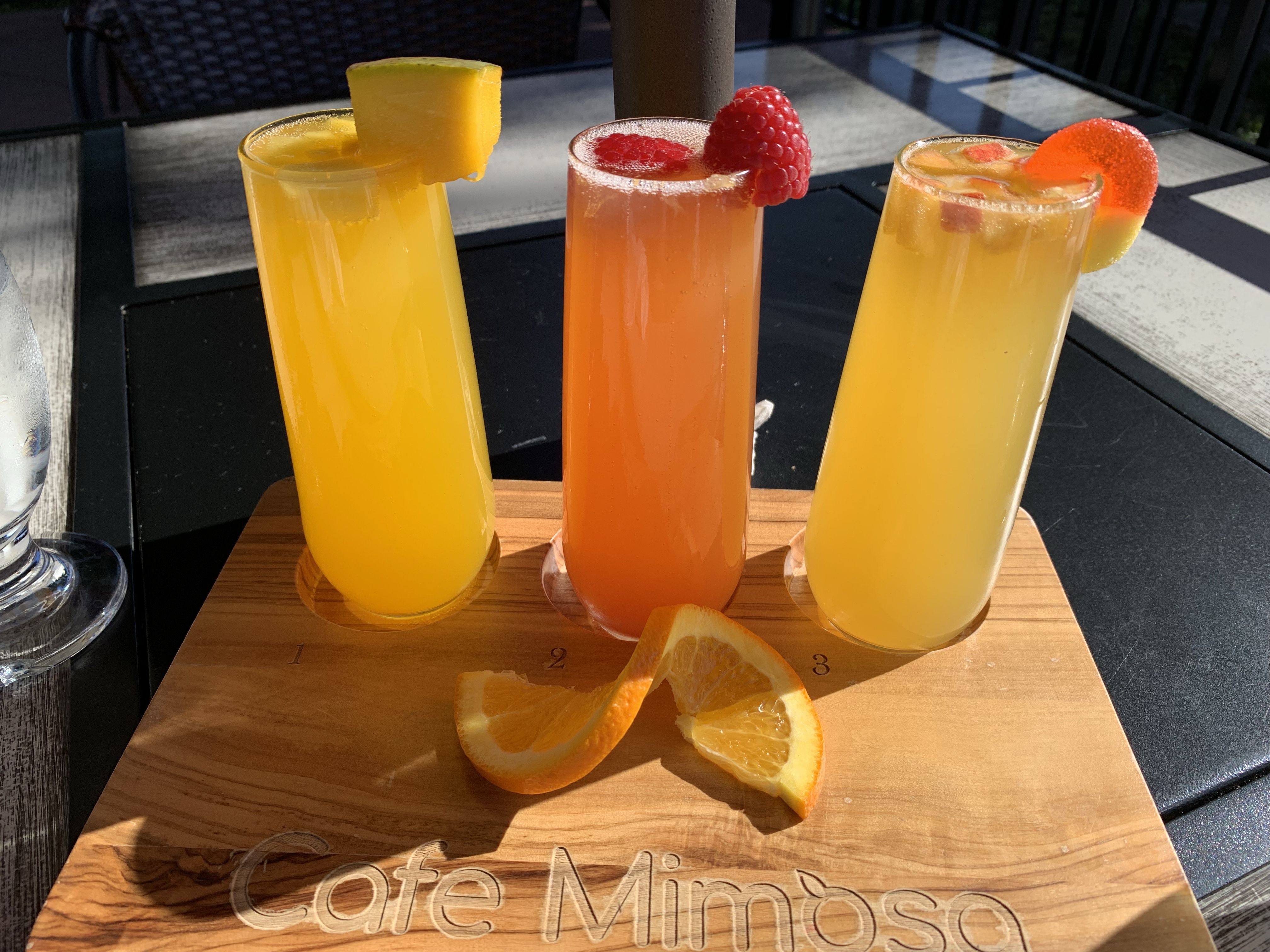 We chose a table on the outdoor patio to enjoy the beautiful morning. I started us off by ordering a flight of Mimosa’s to share. We got to choose 3 flavors so we had Mango, Raspberry and a Bellini. Although a Bellini is one of my favorite drinks, I thought their Mango Mimosa was the best.