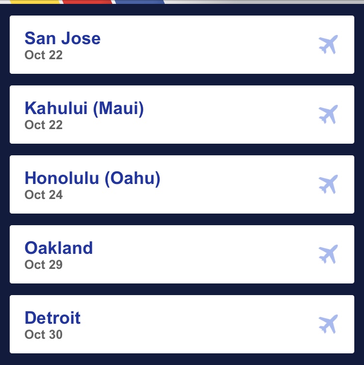 Since our first trip to Hawaii on Southwest, they have added more point-of-origin cities in California in addition to departures from Phoenix, Arizona, and Las Vegas, Nevada. However, the number one thing I had hoped for was that they would eventually offer their own connecting flights. That still hasn’t happened, leaving customers with the burden of trying to independently line up positioning flights to Southwest origin cities.