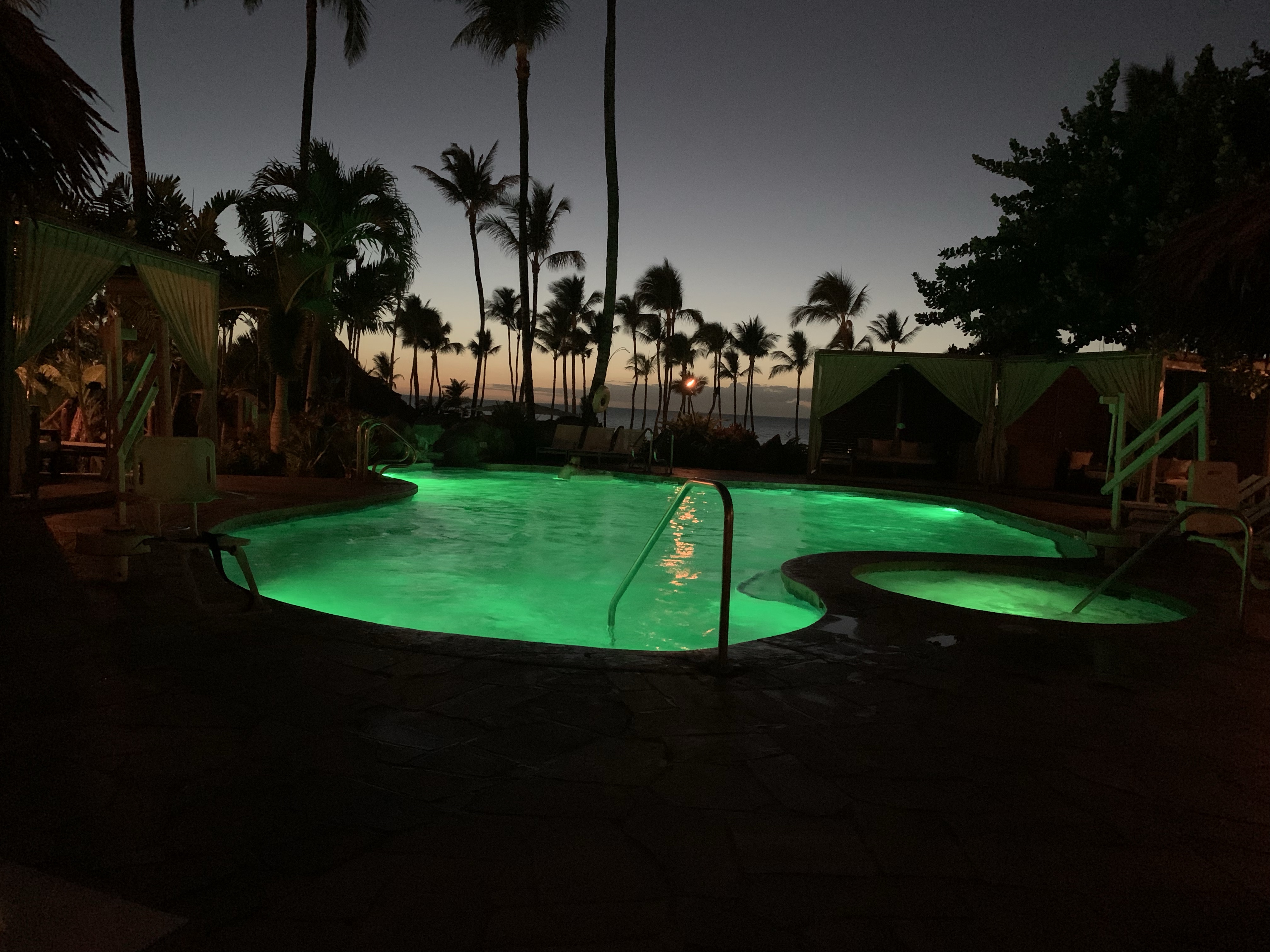 This pool was one of our favorite spots to hang out in the evenings. I love the green lighting against the night sky. Once the sun sets, most people head in to get ready for dinner or whatever they have planned for the evening. We did things a bit differently sexcept for in the hot tub one night, we had this gorgeous pool area with the ocean view all to ourselves. Paradise.