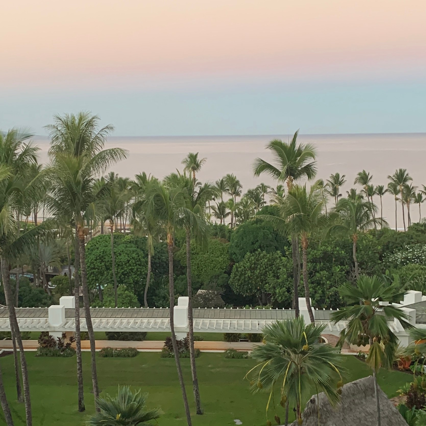 The hotel property is oceanfront with perfect pink sand and offers a long quiet stretch along Wailea beach. The sunsets were spectacular and the mountain view was pretty cool as well. The hotel offers beach chairs that can be reserved, beachfront cabanas, equipment for water activities, and various classes.