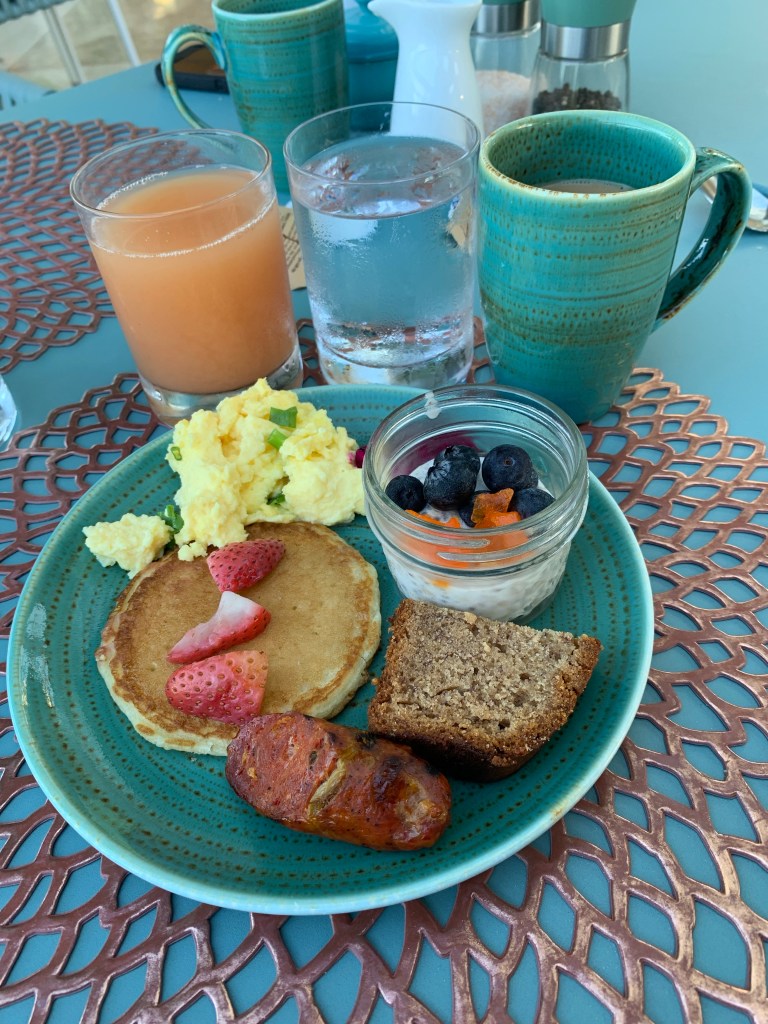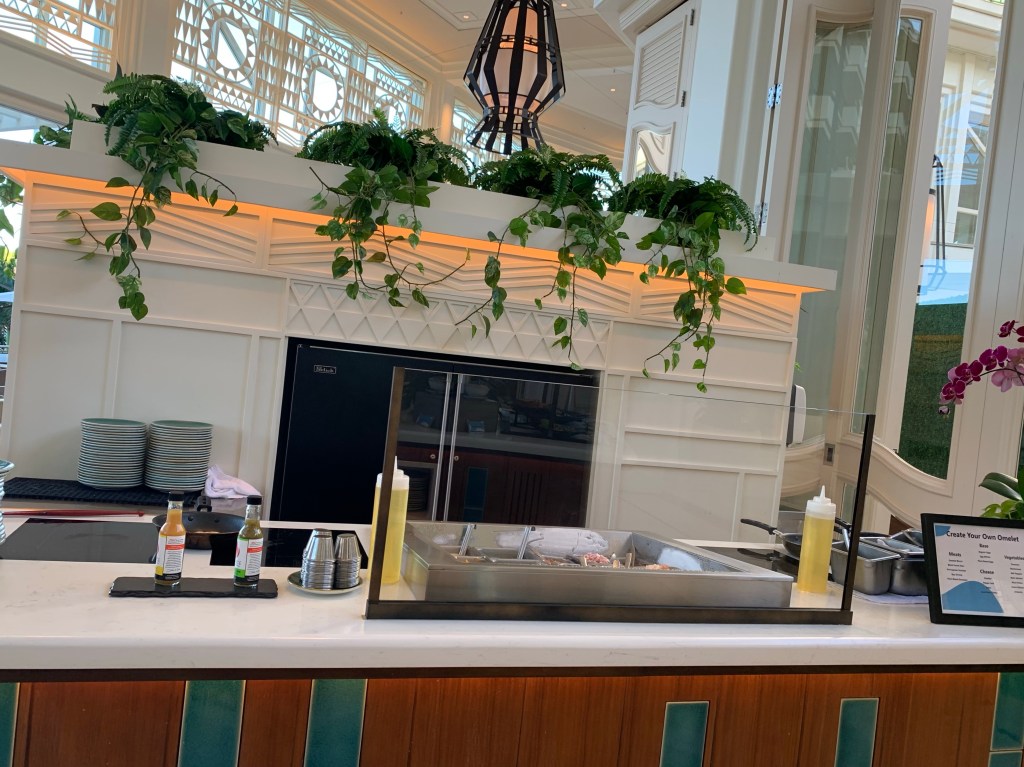 One thing we really enjoyed was breakfast at ‘Ikena. The buffet was not cheap at $50 per person but we had a Hilton $50 per day food and beverage credit that cut the cost in half. This buffet was fantastic. It had a made-to-order omelet station, salads, chia pudding, pastries, cereals, fresh fruits, charcuterie, warm malasadas, and a rotating selection of hot foods. Everything was delicious and the service was top-notch.