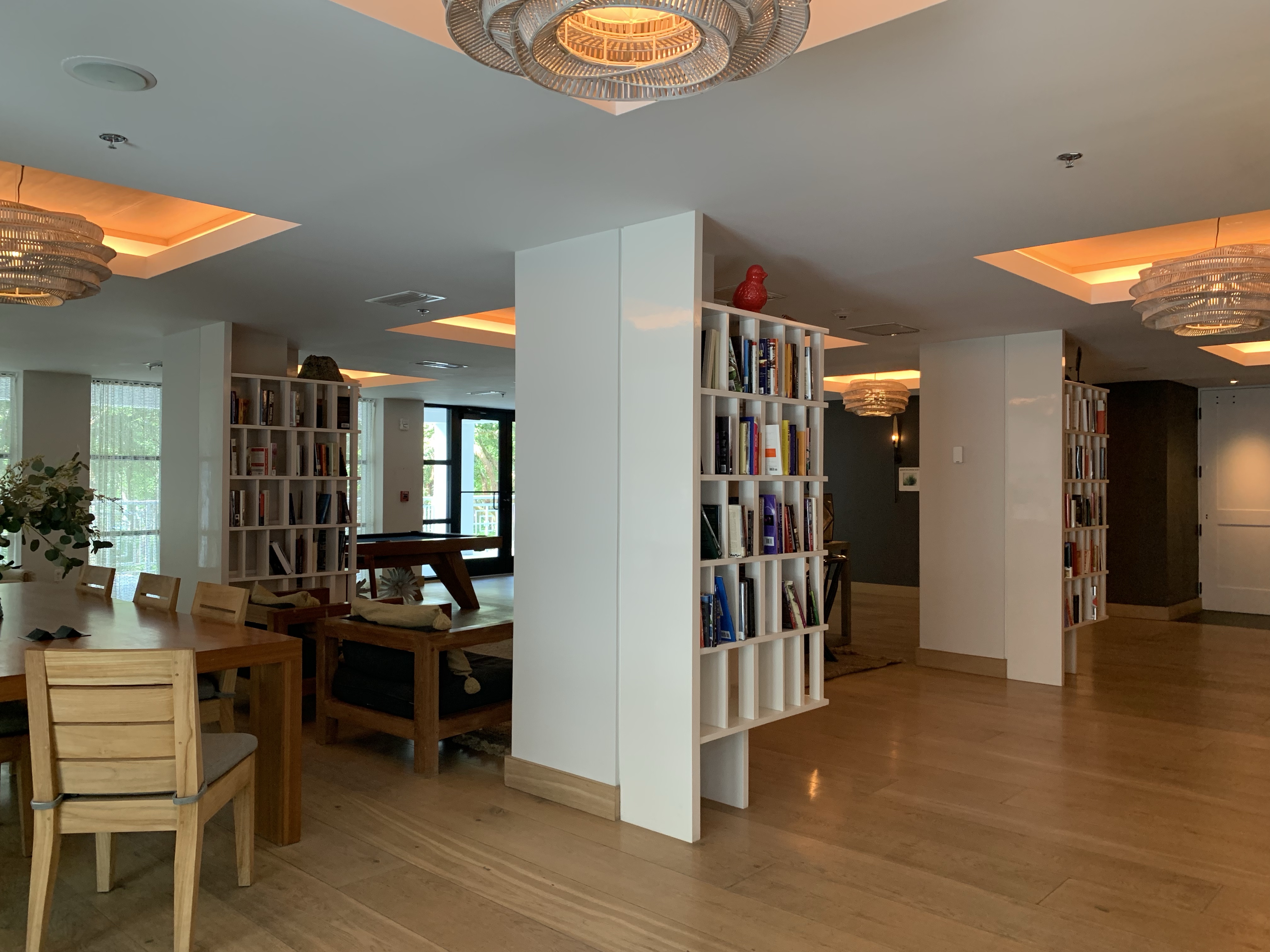 The Lobby area is huge with an expansive library, restrooms, lots of seating, a Scrabble board on one wall, and a pool table. We decided to shoot a game of pool to pass some time while we waited for our room.
