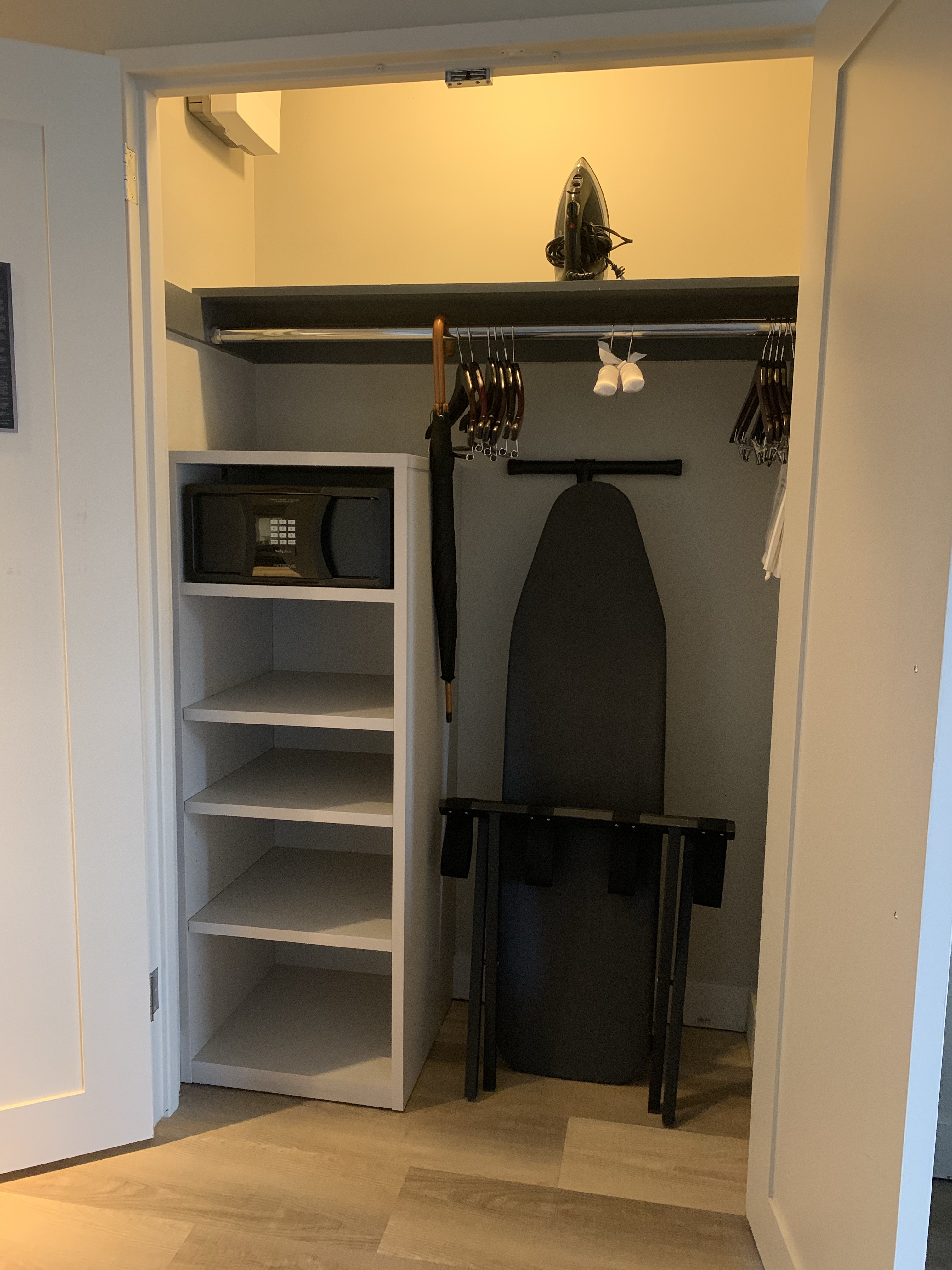 The closet contained all the usual goodies like ironing supplies, a luggage jack, and a safe. There was also a large umbrella which was a thoughtful touch!