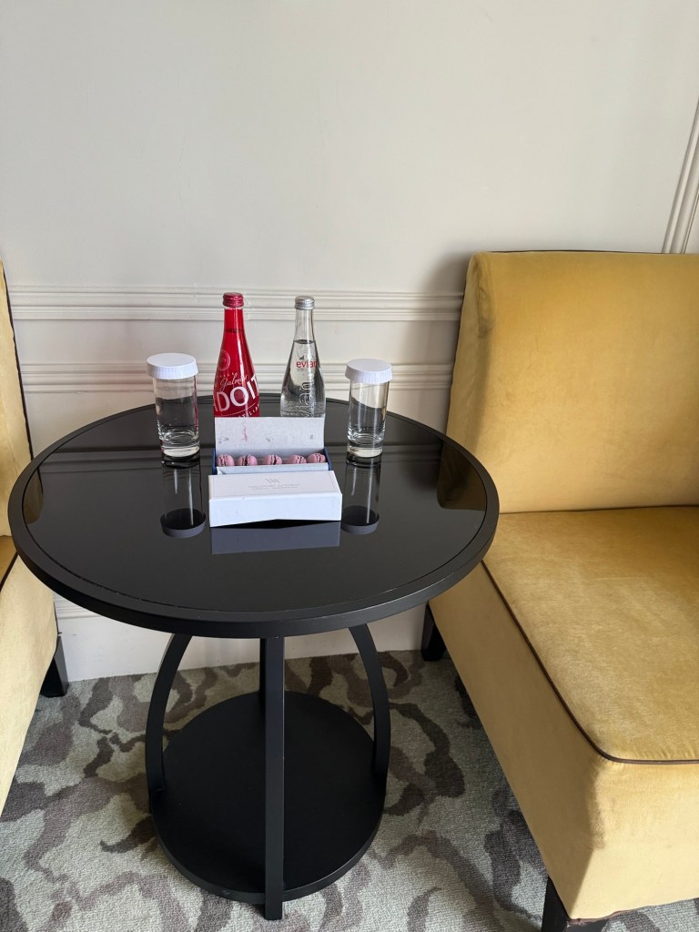 When we arrived they gave us coupons for complimentary cocktails at the Gordon Ramsay bar and there were Welcome Amenities of Macarons and Sparkling Water waiting in our room. We utilized my Hilton Aspire $200 Resort Credit for an amazing dinner experience at the hotel’s La Veranda Restaurant. After devouring all the courses and sharing a bottle of wine, our bill was only 5 Euros after the credit. We also enjoyed a delicious breakfast which was included with our stay. Think fresh croissants, scrambled eggs with herbs, sauteed button mushrooms, freshly squeezed orange juice, and so much more. Divine.