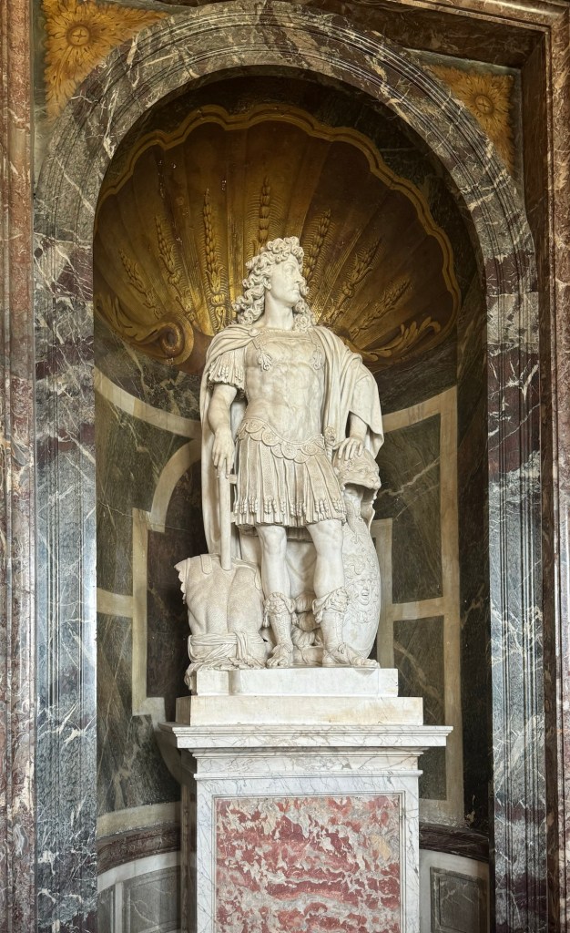 We had to stand on hard cobblestones in the hot sun while waiting in line for our timed entrance. The palace was extremely crowded (we were packed in like sardines) due to visiting on a Saturday. Some of the grounds and fountains near the palace were partitioned off for the special event. We also couldn’t find the carriage house (I really wanted to see the coaches) because it is located off-site which wasn’t clear on the map or the app. Even though we didn’t get to see the Saturday night musical fountain shows and fireworks displays, we did enjoy a wonderful meal at the hotel and heard parts of the concert from our balcony at the Waldorf Astoria Trianon Palace!