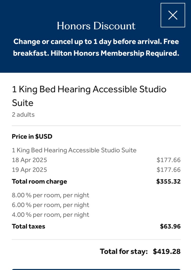 The rates for our King Studio Suite (not accessible) would have run $419. We booked our stay for a very low amount of Hilton points and used the $50 Hilton credit on our Hilton Surpass card to cover the parking cost. It was a super affordable stay, with complimentary cocktails and breakfast, which meant more money for our Foodie Finds and other local experiences. Our experience at the Embassy Suites Grand Rapids exceeded my expectations. We will definitely stay there the next time we visit Grand Rapids.