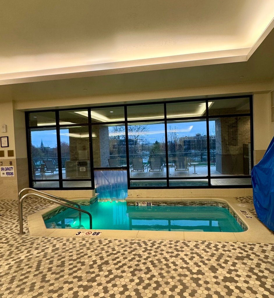 We ducked into the pool area early on Saturday and had the whole place to ourselves. I started out in the indoor hot tub before moving outside. The cool morning air was a refreshing contrast to the heat from the hot tub. Afterwards, I did a few laps in the pool and hopped out just as other guests started arriving. Perfect timing!