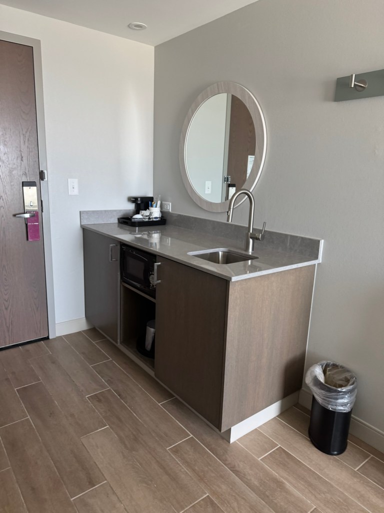 I booked a One King Suite with a microwave, mini fridge, and wet bar. Of course, Labor Day weekend is a popular time for any Michigan beach hotel. Hilton uses a dynamic pricing model, so the price fluctuates based on demand. We wanted to enjoy one of the last beautiful Michigan summer weekends, so I booked our stay at their peak rates.