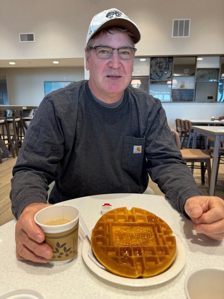 After a fabulous night’s sleep in our super comfy king bed (love Hilton beds), we headed down for coffee and breakfast. This Hampton Inn offered a nice selection of breakfast items and was well-maintained. We had time for one last visit to the hot tub, which was delightful with the crisp morning air.